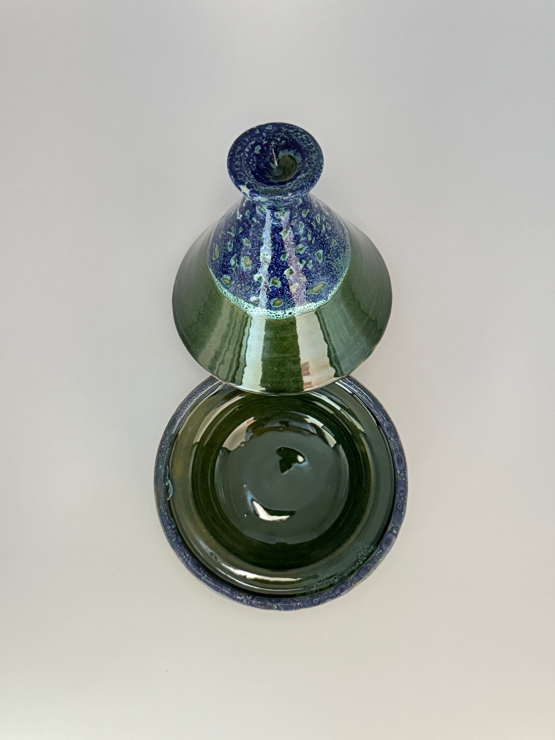 Diese handgefertigte Tajine vereint marokkanisches Kunsthandwerk mit modernem Design. Sie eignet sich hervorragend als dekoratives Highlight auf dem Tisch und zum stilvollen Servieren von Snacks, Süßigkeiten oder Dips.
