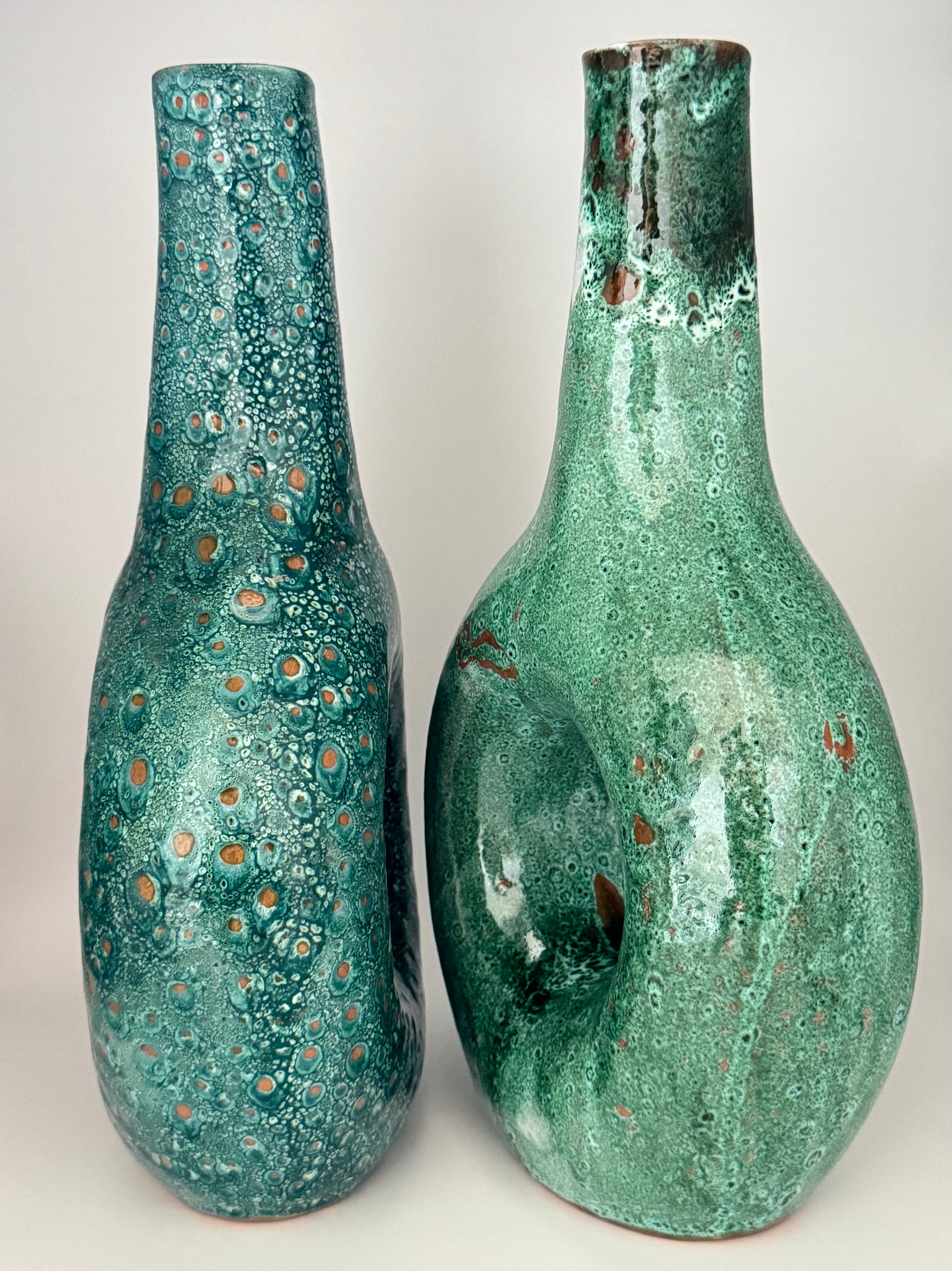 Diese handgefertigte Keramikvase zeichnet sich durch ihre elegante, leicht offene Mitte und geschwungene Form aus und bringt marokkanische Handwerkskunst in Ihr Zuhause. Dank ihrer harmonischen Proportionen ist sie ideal für Trockenblumen, einzelne Blüten oder als dekoratives Highlight auf Regalen oder Tischen.