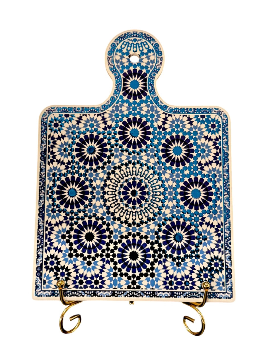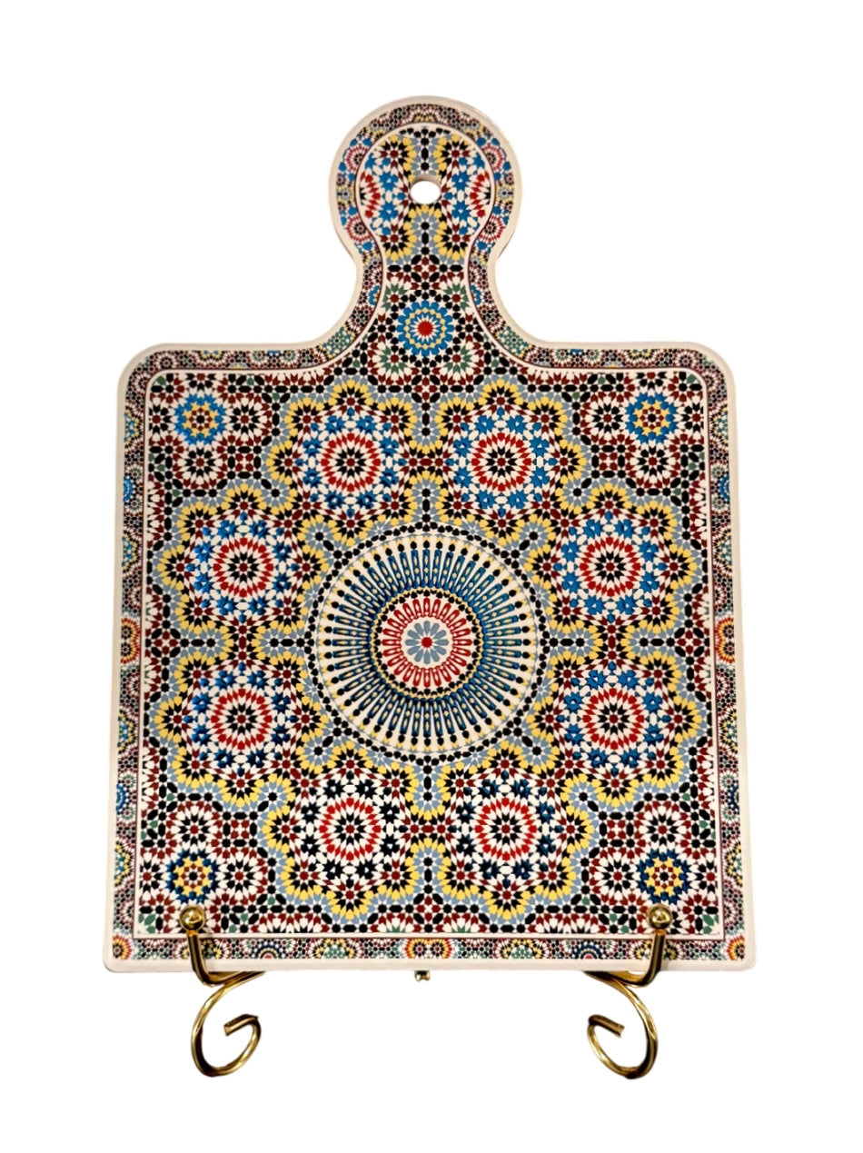 Diese quadratische Servierplatte verbindet modernes Design mit dem einzigartigen Charme marokkanischer Mosaike. Das farbenfrohe Muster bringt Lebendigkeit auf jeden Tisch und eignet sich ideal zum Servieren von Snacks, Obst oder kleinen Vorspeisen. Dank des integrierten Aufhängelochs kann die Platte auch stilvoll an der Wand präsentiert werden und wird so zu einem dekorativen Highlight in jedem Raum.